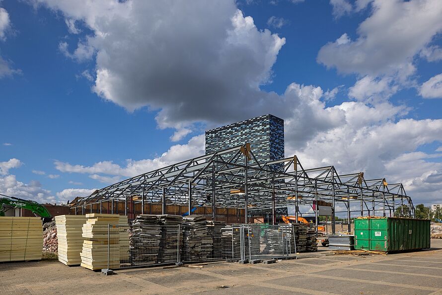 ADEX laat voor Burgland Bouw, de aannemer van het nieuwe sportcentrum, verhardingen en puingranulaat achter. Die materialen worden direct gebruikt voor de bouwweg en de fundering van het nieuwe gebouw. Zo krijgen de geoogste materialen meteen een tweede leven op dezelfde plek.