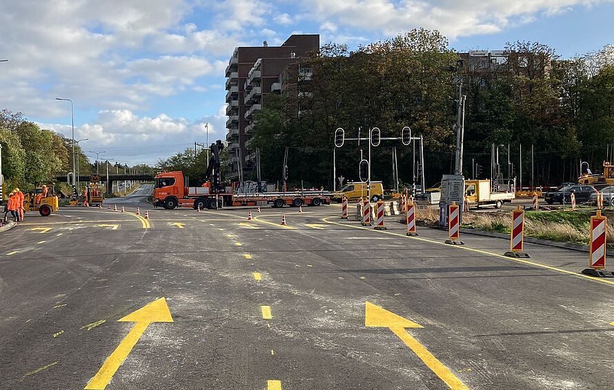 Tijdens dit weekend wordt het Nelson Mandelaplein veranderd. Er wordt nieuw asfalt aangelegd, de tijdelijke verkeerslichten worden weggehaald en er worden vaste verkeerslichten geplaatst. Ook gaan de tijdelijke gele lijnen weg en komen er nieuwe witte lijnen. Na dit weekend rijd je op de nieuwe, uiteindelijke situatie.