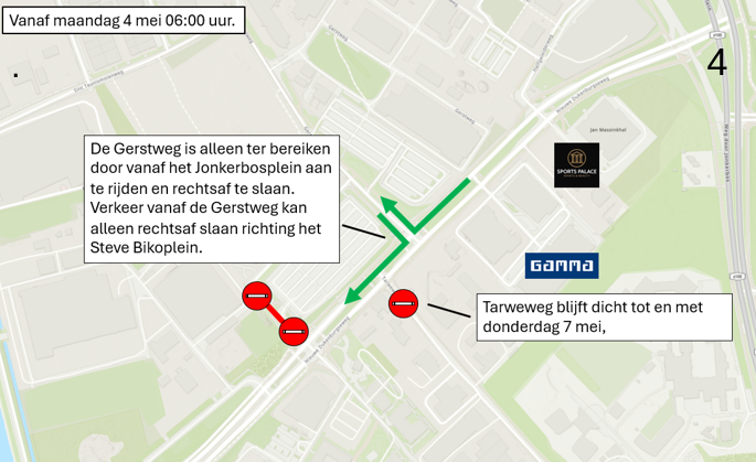 - Auto’s rijden dan via de Gerstweg